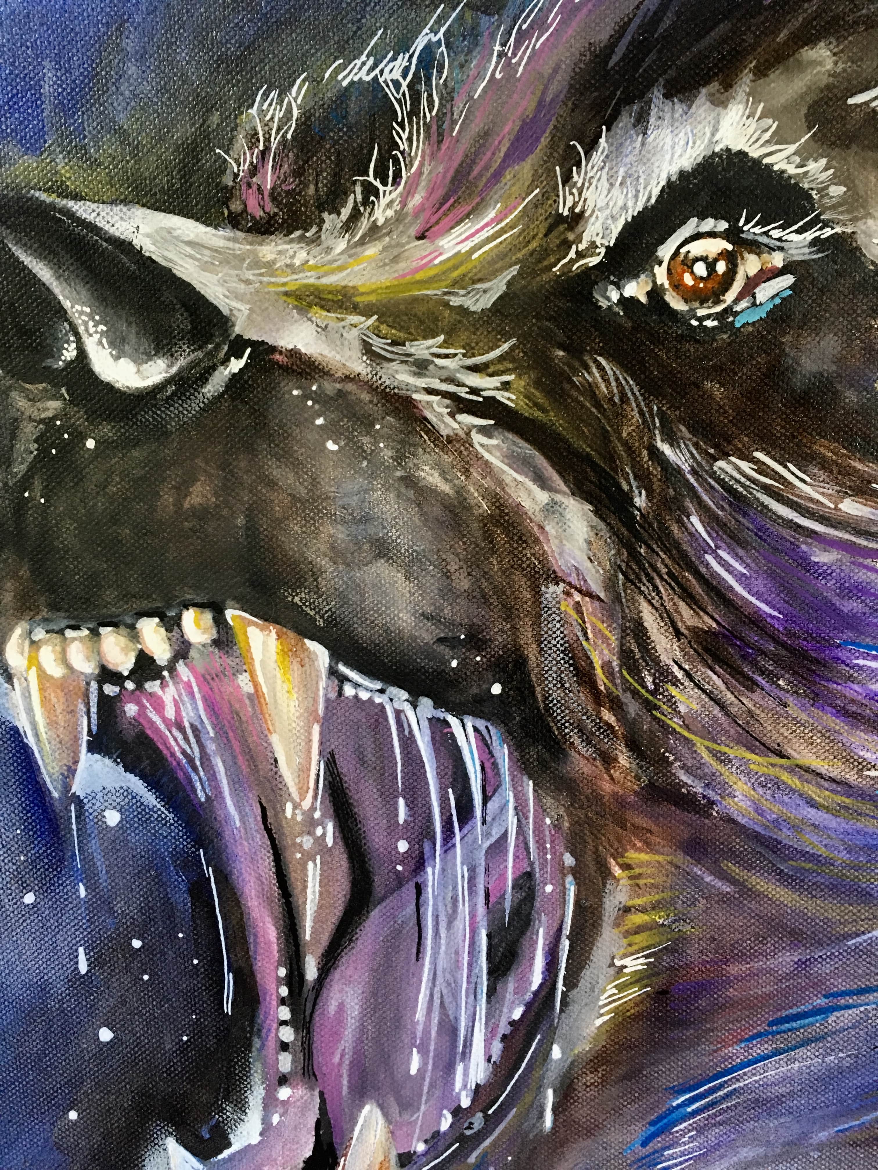 "Bears", 2020. Disponible: 250 euros, 50X65cm. Le roi des plaines. Encre acrylique, acrylique, encre de chine, feutres peinture sur toile de lin.