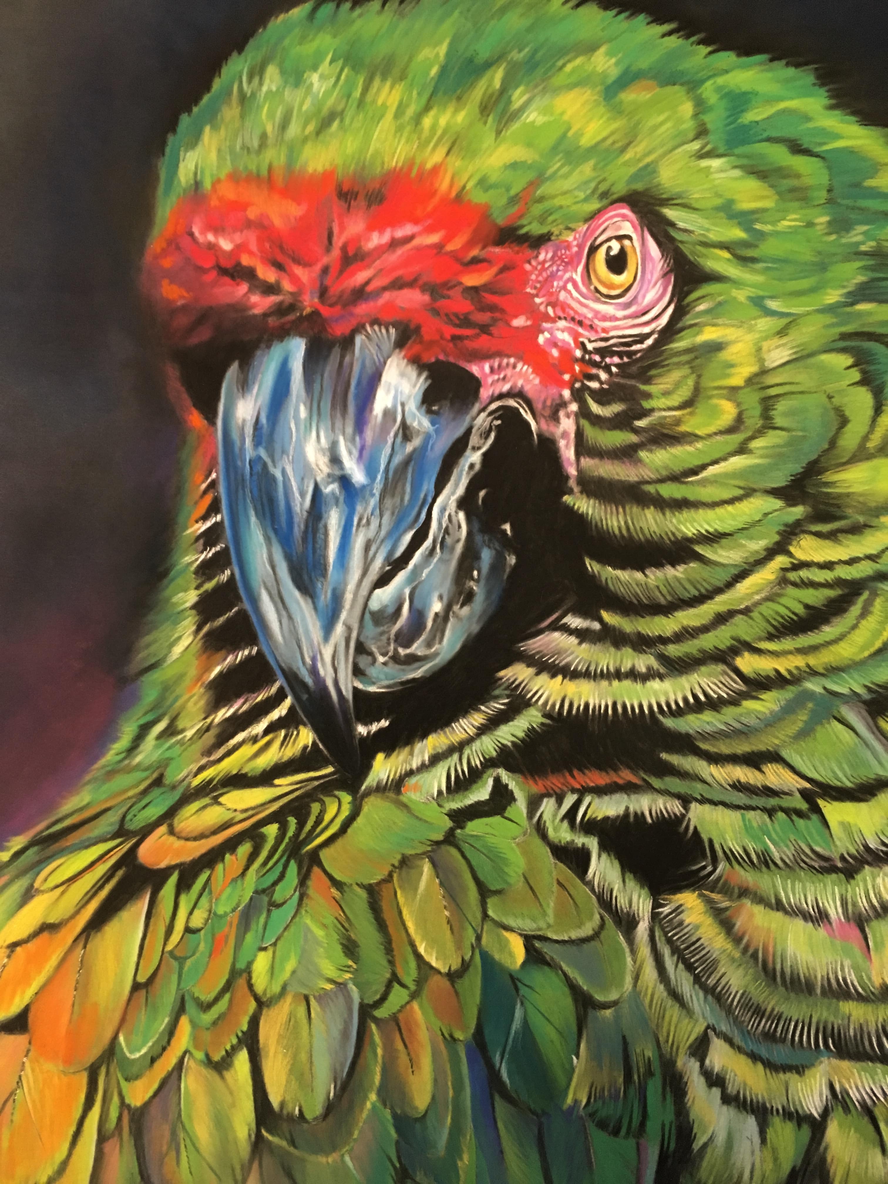 "PARROT", 2021.DISPO. 50X70CM sur papier pastelmat gris anthracite. Il est la représentation même de la couleur.